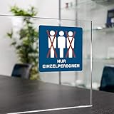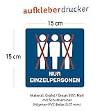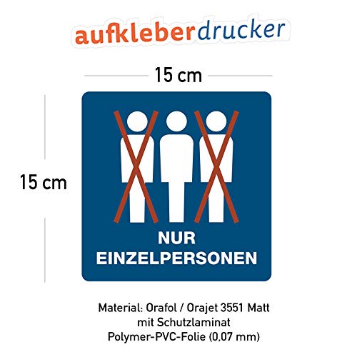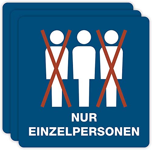 stempel-fabrik – 3 Stück Aufkleber "Nur Einzelpersonen" mit Piktogramm – selbstklebende Hinweisschilder bitte einzeln eintreten – ideal für Schaufenster (15 x 15 cm | Blau)