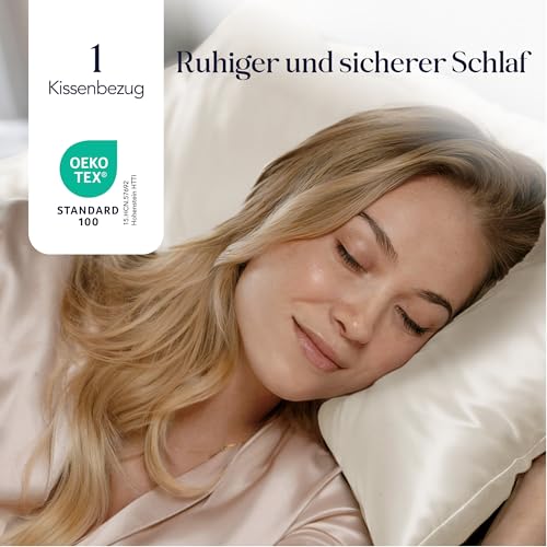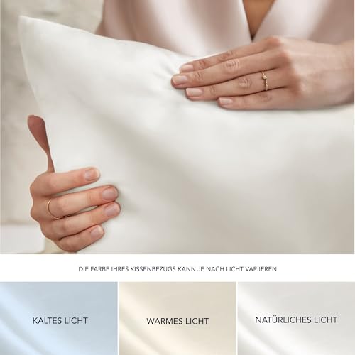 Dreamzie Kissenbezüge Seide - 65x65 cm - Gewicht 19 Momme 100% Reine Maulbeerseide Doppelseitig - Seidenkissenbezug für Haar und Haut, Anti-Aging, Anti-Bettwanzen - Elfenbein