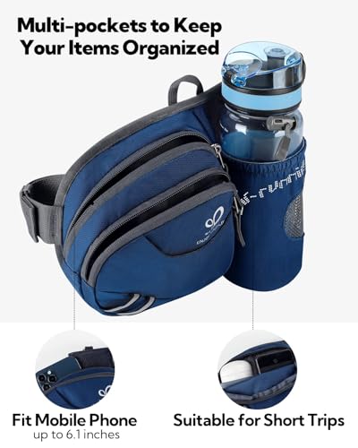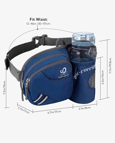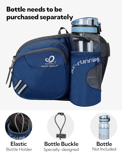 WATERFLY Gürteltasche Bauchtasche mit Flaschenhalter Damen und Herren, Atmungsaktiv Sport Hüfttasche für Laufen Radfahren Camping Klettern Reisen Wandern Joggen Hundetraining Königsblau