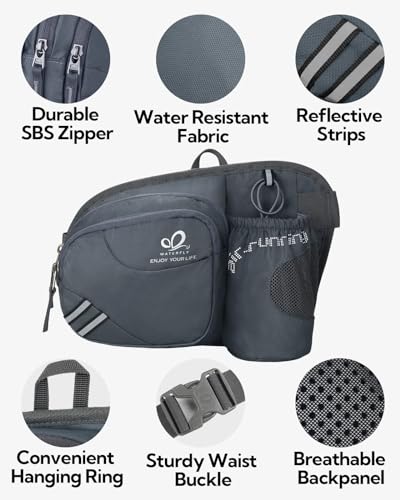 WATERFLY Gürteltasche Bauchtasche mit Flaschenhalter Damen und Herren, Atmungsaktiv Sport Hüfttasche für Laufen Radfahren Camping Klettern Reisen Wandern Joggen Hundetraining
