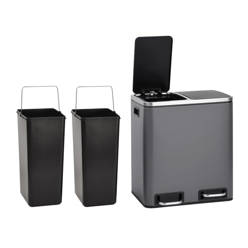 TM2X15 Mülleimer 30 Mülltrennsystem Abfalleimer mit Fächern Grau - Svita