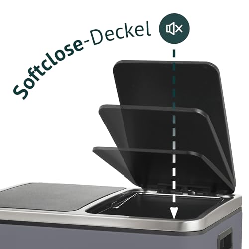 SVITA TM2X15 Treteimer 30 Liter Abfalleimer Inneneimer Mülleimer Design Mülltrennung Papierkorb Küchen-Ordnung Trennsystem Softclose-Deckel Pulverbeschichteter Stahl Grau