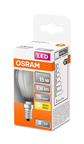 OSRAM Filament LED Lampe mit E14 Sockel, Warmweiss (2700K), Tropfenform, 1.5W, Ersatz für 15W-Glühbirne, matt, LED Retrofit CLASSIC P