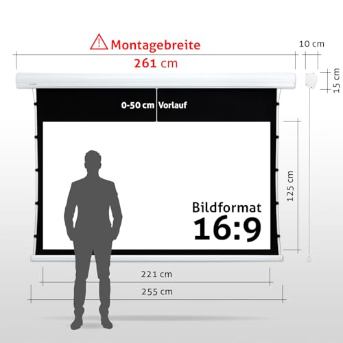 ESMART Expert XTR Tension Leinwand AKUSTIK 261 cm Bild 221 x 125 cm (100") 16:9 | Fernbedienung | Heimkino elektrische Beamer Projektionsleinwand Motor Tension Leinwand LCD LED
