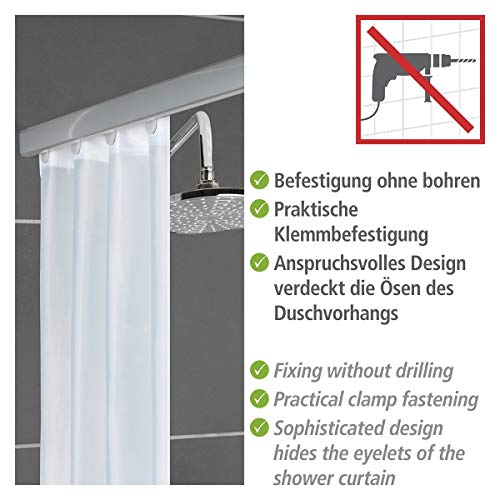 WENKO Teleskop-Duschvorhangschiene Era Chrom, ausziehbare Vorhangschiene aus rostfreiem Aluminium, zur Befestigung von allen Duschvorhängen, Befestigen ohne bohren, 125-210 x 2 x 3,5 cm