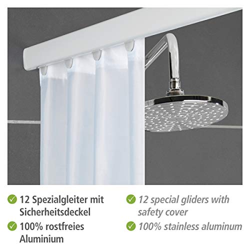 WENKO Teleskop-Duschvorhangschiene Era Weiß, ausziehbare Vorhangschiene aus rostfreiem Aluminium, zur Befestigung von Allen Duschvorhängen, inkl. Befestigen ohne Bohren, 75-125 x 2 x 3,5 cm