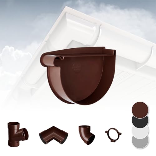 Regenrinnen Komponenten Dachflächen 100m² PVC in 4 Farben RainWay L: Braun, Stutzenendkappe links