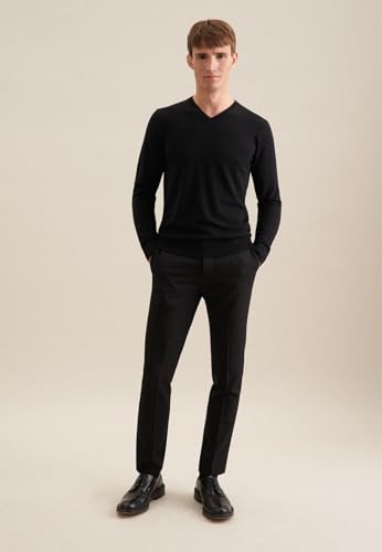 Strickpullover SEIDENSTICKER Schwarze Rose, Herren, Gr. L, schwarz, 100% Wolle, unifarben, regular fit, V-Ausschnitt, Pullover Strickpullover, V-Neck Uni