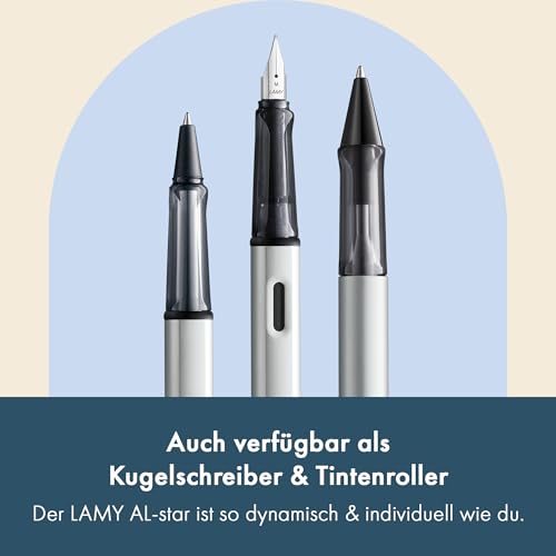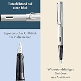 Lamy AL-star whitesilver Füller – Füllhalter mit ergonomischem Griff & polierter Stahlfeder in Strichbreite F – leichtes Aluminiumgehäuse – inkl. Tintenpatrone T 10 blau – Rechtshänder