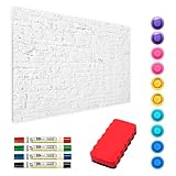 Nicht auf LagerALLboards Metallische Magnettafel WEISSER ZIEGEL 60x40cm Memoboard für jede Art von Magneten Magnetpinnwand + 4 Marker, 10 Magnete und Schwamm