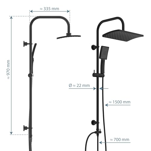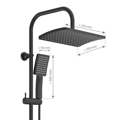 Schütte Duschset MALLORCA Duschsäule mit großer Regendusche Handbrause mit 3 Strahlarten Duschsystem ohne Armatur Schwarz Matt