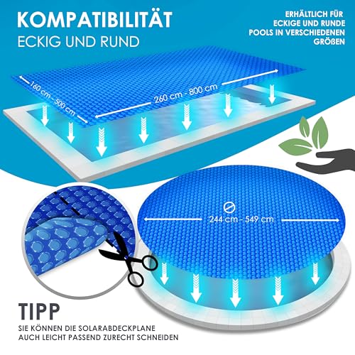 KESSER® Pool Solarabdeckplane Solarfolie Stärke 120μm Solarabdeckung Solarplane zuschneidbar Poolsolarplane Solar Folie inkl. 1x Schere, 1x Lochzange & 12x Ösen Poolheizung für Wassererwärmung