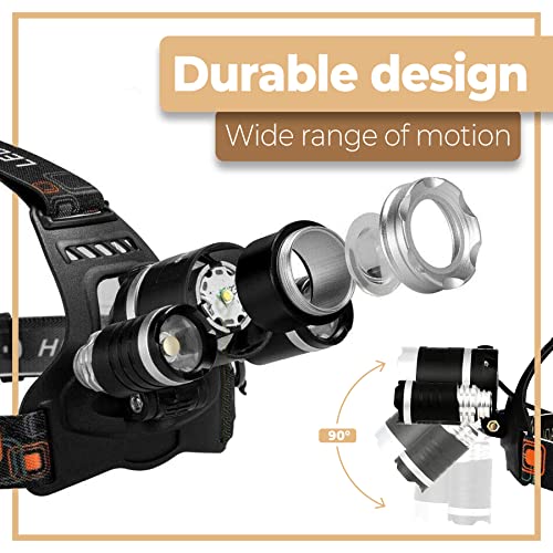 Retoo Stirnlampe LED Superhell mit 4 Lichtmodi und 90° Verstellbarem, Kopflampe für Outdoor, Camping, Wandern, Angeln, Wasserdicht, Batteriebetrieben, Headlampe für Kinder und Erwachsene
