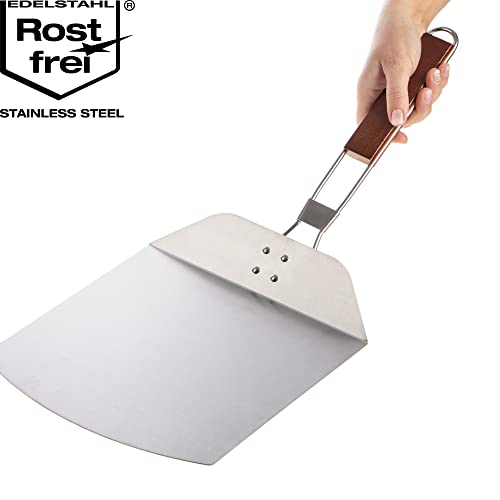 com-four® Pizzaschaufel aus rostfreiem Edelstahl 430 - Pizza- und Kuchenheber mit Holzgriff - Pizzaschieber für Pizza, Flammkuchen, Brötchen und Brot - klappbarer Griff (silberfarben/braun - eckig)