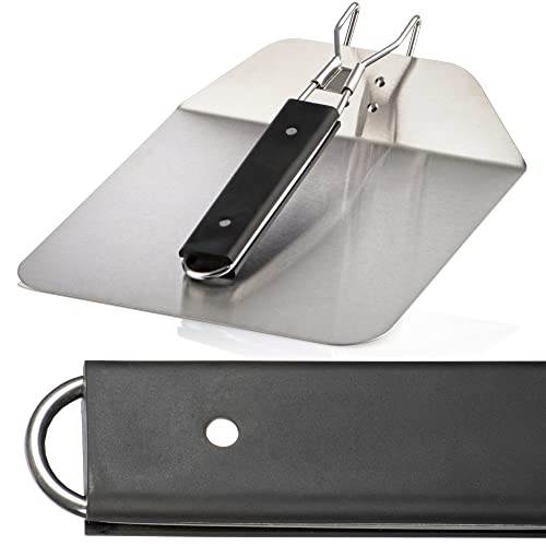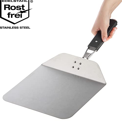 com-four® Pizzaschaufel aus rostfreiem Edelstahl 430 - Pizza- und Kuchenheber mit Holzgriff - Pizzaschieber für Pizza, Flammkuchen, Brötchen und Brot - klappbarer Griff (silberfarben/schwarz - eckig)