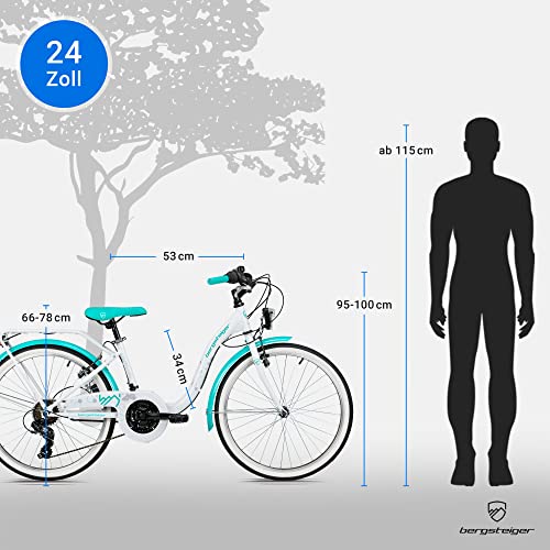 Bergsteiger Atlantis 20, 24 Zoll Kinderfahrrad, geeignet für 6,7, 8, 9, 10, 11 Jahre, StVZO, Schaltung, Mädchen-Fahrrad mit Dynamo-Licht
