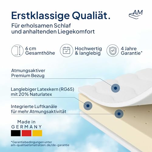 AM Qualitätsmatratzen Premium Latex Topper 135x180cm RG65 - Made in Germany - Atmungsaktiver Naturlatex Topper 135x180-6cm - Matratzenauflage 135x180 mit Lyocell Bezug und Anti-Rutsch Funktion