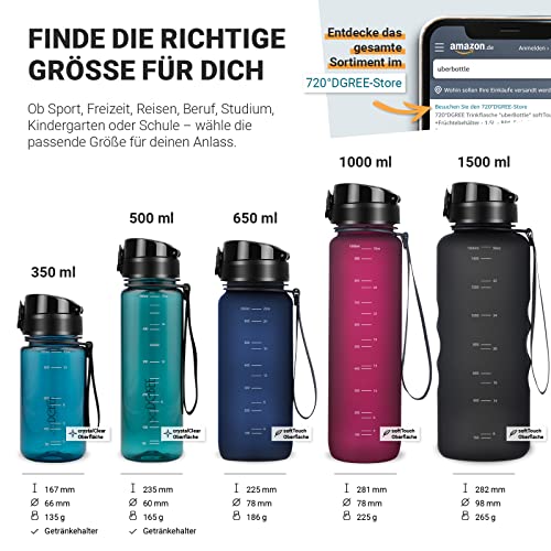 720°DGREE Trinkflasche “uberBottle“ softTouch +Sieb Multicolour - 1L - BPA-Frei - Wasserflasche für Uni, Sport, Fitness, Fahrrad, Outdoor - Sportflasche aus Tritan - Leicht, Bruchsicher, Nachhaltig