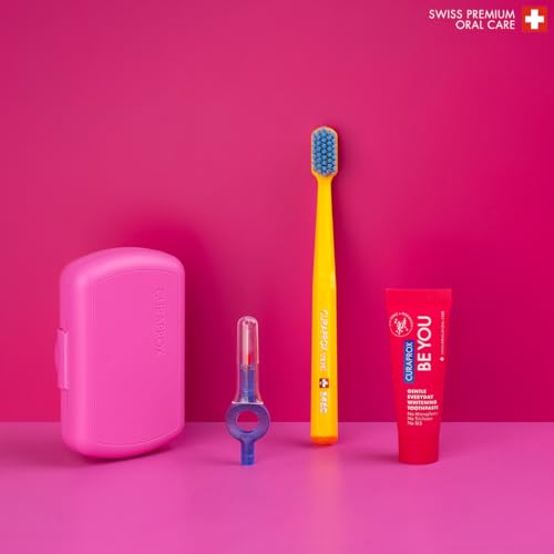 Curaprox Reiseset – Zahnbürste CS 5460 Mit „be You“-zahnpasta | 2 CPS Prime Interdentalbürsten 07 Und 09 | Zahnpflegeset 9,5 Cm X 6 Cm | Magenta
