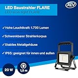 REV LED Fluter Strahler Schwarz IP65 20W 1700lm kaltweiß Ständer Kabel Stecker