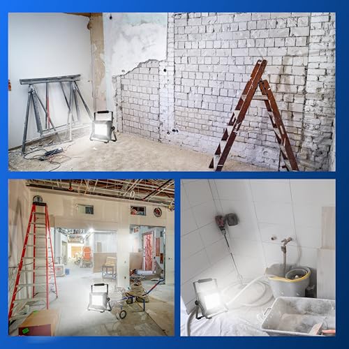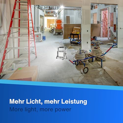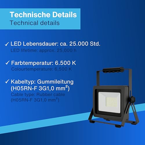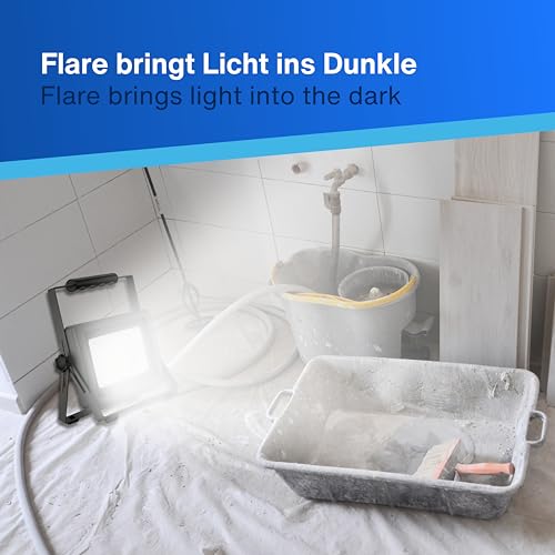 REV LED Baustrahler - 50W, 4250lm, IP65, 6500K, robuster Aluminium Baustellenlampe für Baustelle, Werkstatt & Keller, 1,5m Gummikabel, anthrazit-silber