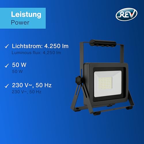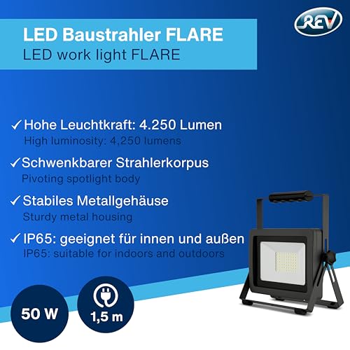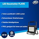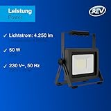 REV LED Arbeitsleuchte Baustrahler Flare IP65 50W 4250lm Tageslicht 6500K auf Ständer 2707215010