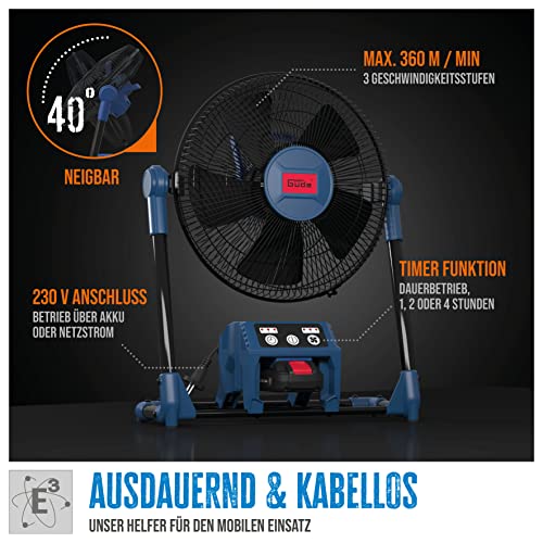 Güde Akku Ventilator V 18-0 (18 V oder 230 V, Windgeschwindigkeit max. 360 m/min. in 3 Stufen einstellbar, 40° neigbar, Dauer- oder Timerbetrieb 1, 2 oder 4 h., ohne Akkupack und Ladegerät)