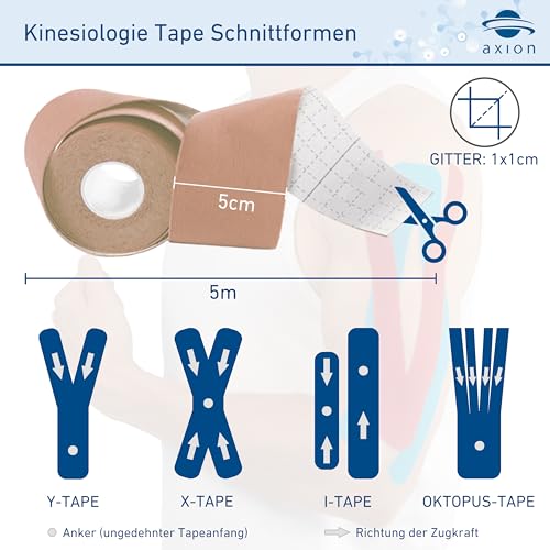 axion Kinesiologie Tape 2er Set 500x5cm | 2 Rollen wasserfeste, hautfreundliche, elastische und selbstklebende Bandage | Physio-Tape optimal für Sport & Alltag (Beige)