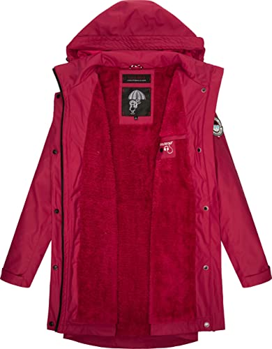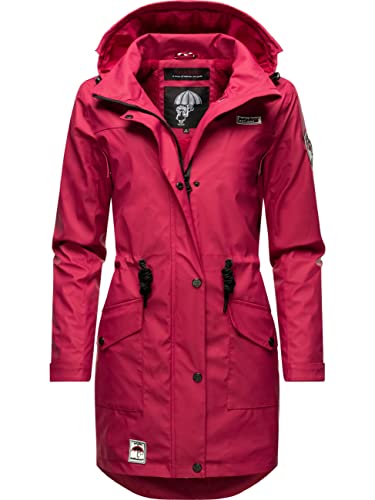 Navahoo Damen Regenmantel Deike – Wasserabweisend mit Abnehmbarer Kapuze Rot L