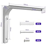 Faankiton 4 Stück Regalhalterung Maximale Tragkraft 70kg, Winkel Regal mit Schrauben, Multifunktionale Metallwinkel 90 Grad für Wandhalterung Regal, Regalhalterung (250 x 300 mm)