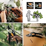 Fiskars Bypass-Gartenschere für frische Äste und Zweige, Antihaftbeschichtet, Stahl-Klingen/FiberComp-Griffe, Schwarz/Orange, Solid, P121, 1057160