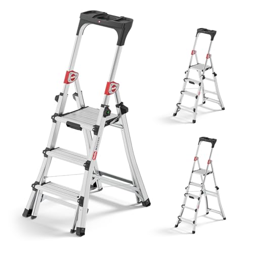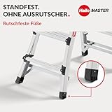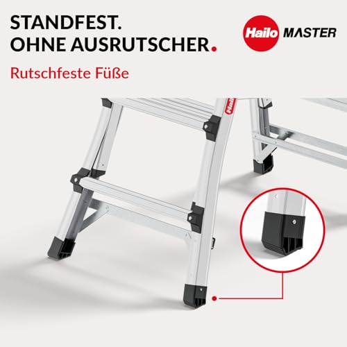 Hailo Master TL100 Topline 3-in-1 Alu Teleskopleiter - Flexible Arbeitshöhe 3-5 Stufen belastbar bis 150 kg - 2,65-3,09 m Arbeitshöhe einstellbar - extragroße Plattform - Leiter ausziehbar - Aluleiter