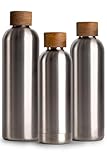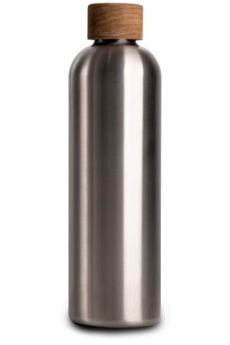 Edelstahl Trinkflasche 1 Liter, Thermosflasche 1l mit Akazienholz Deckel, Iso...