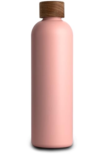 T&N Edelstahl Trinkflasche 1 Liter, Thermosflasche 1l mit Akazienholz Deckel, Isolierte Wasserflasche auslaufsicher bei Kohlensäure, Isolierflasche 1000ml - Nude