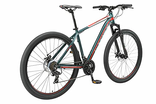 BIKESTAR Hardtail Aluminium Mountainbike Shimano 21 Gang Schaltung, Scheibenbremse 29 Zoll Reifen | 19 Zoll Rahmen Alu MTB | Grün Rot