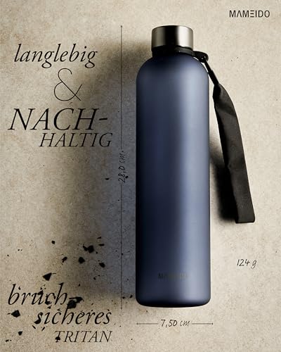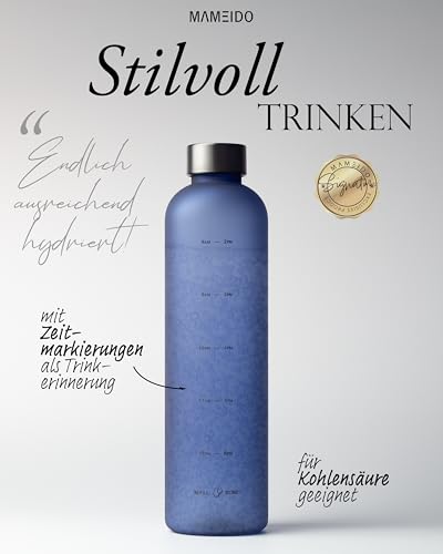 MAMEIDO Trinkflasche mit Zeitmarkierung 1 l Kohlensäure geeignet, auslaufsichere Water Bottle, Wasserflasche BPA frei für Sport, Gym & Büro (Sapphire Blue)