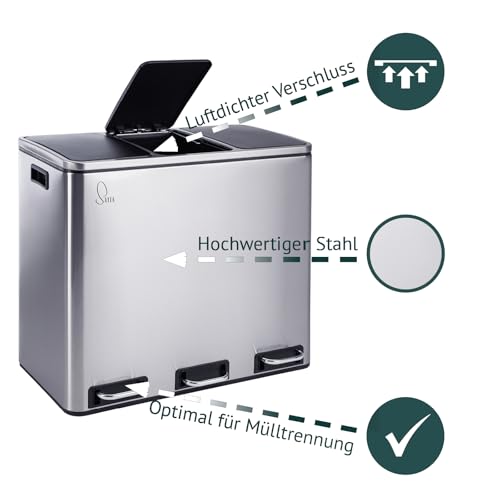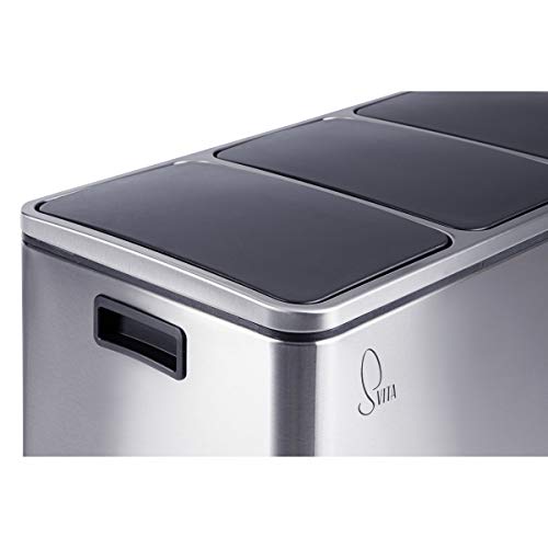 SVITA TM3X18 Edelstahl Treteimer 54 Liter Abfalleimer Mülleimer Design Silber Mülltrennung Papierkorb Küchen-Ordnung Trennsystem