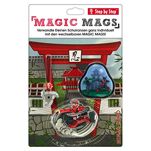 Step by Step Magic MAGS Ninja Yuma, grau-rot, 3-teilig, 2 Magnet-Applikationen und 1 Anhänger, Ergänzung für Schulranzen oder Vorschulrucksack