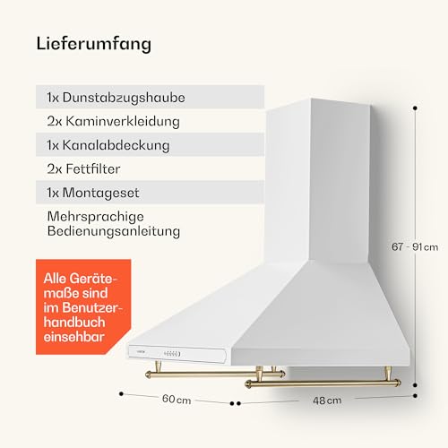 Klarstein Victoria Dunstabzugshaube 60cm Retro-Design 644,5m³/h 2 LED-Lampen 10036449