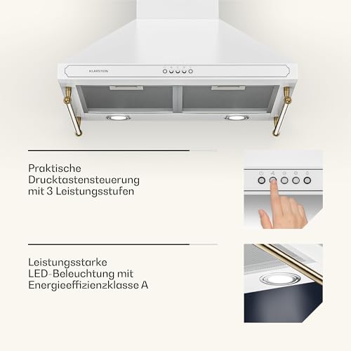 KLARSTEIN Victoria Dunstabzugshaube 60cm Retro-Design 644,5m³/h 2 LED-Lampen