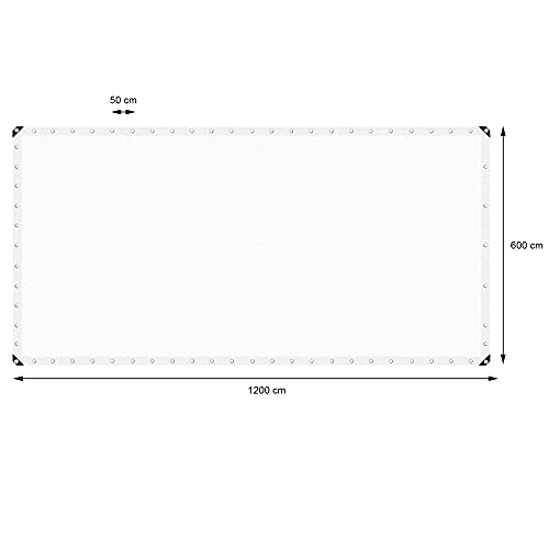 ECD Germany Abdeckplane Gewebeplane mit Ösen 6x12m 72m2 260g/m2 Weiß aus Polyethylen Schimmelresistent Wasserdicht Reißfest Schutzplane Bootsplane