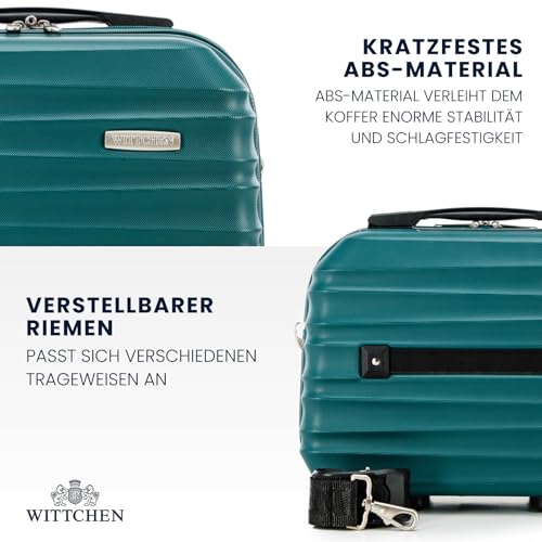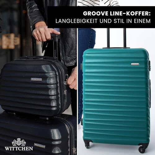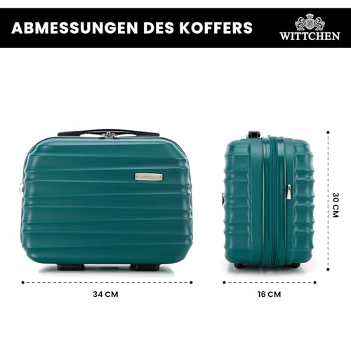 WITTCHEN Kosmetikkoffer Reisekoffer Handgepäck Kabinengepäck Rollkoffer Hartschale aus ABS Reisegepäck Kulturbeutel Kosmetiketui Kosmetiktasche Damen Groove Line grün Lufthansa/Eurowings/Condor