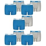 PUMA 10 er Pack Boxer Boxershorts Jungen Kinder Unterhose Unterwäsche, Farbe:417 - Blue/Grey, Bekleidung:128