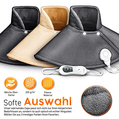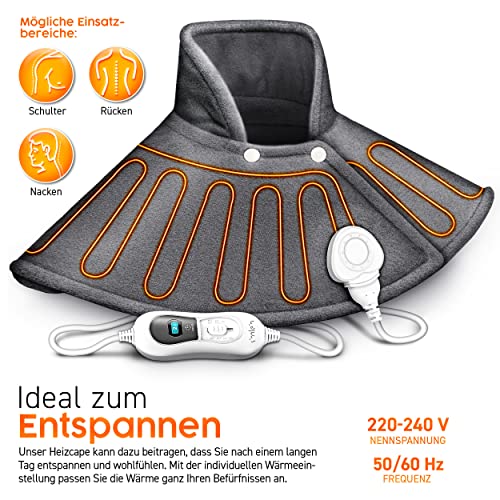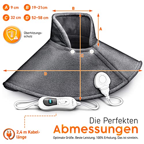 sinnlein Heizkissen elektrisch für Schulter, Nacken und Rücken | Heizcape mit 3 Temperaturstufen & Abschaltautomatik | Wärmekissen mit Abschaltautomatik und 100W