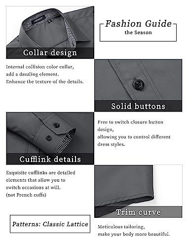 HISDERN Herren Hemd Regular Fit Formale Freizeithemden Herrenhemden Grau Langarm Männer Hemd Klassisches Businesshemd mit Tasche,S