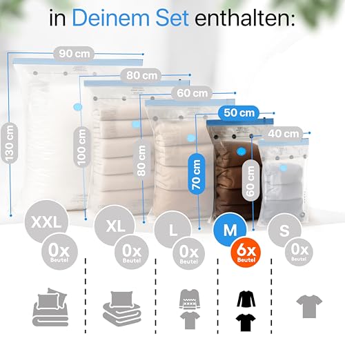 Vakuumbeutel Set 6 Stück als 6x 50x70 cm - Staubsauger Vakuumierbeutel für Kl...