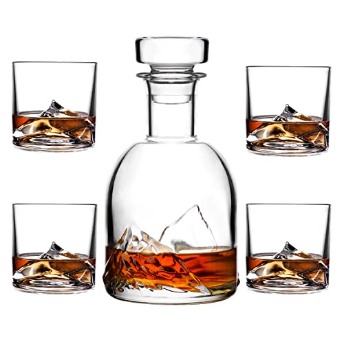 LIITON Whisky Gläser Everest 5-teilig aus Kristallglas, Tumblergläser mit Whiskey Dekanter, Geschenke für Männer für Cocktails, Gin, Bourbon, Rum, Trinkgläser Geschenkset