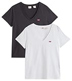 Levi's Damen 2-Pack V-Neck Tee T-Shirt, Caviar / White, XL