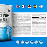 BioTechUSA 100% Pure Whey | Proteinpulver mit BCAA und Glutamin | Glutenfrei, Palmölfrei | 21g Protein pro Portion, 1 kg, Black Biscuit