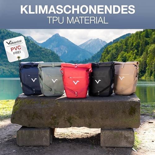 Valkental Fahrradtasche Gepäckträgertasche mit Umhängeschlauf, 2in1 wasserdicht, mit Rolltop Verschluss & Laptopfach 28L